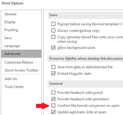 Word shows me a File Conversion dialog then opening files from enhanced export